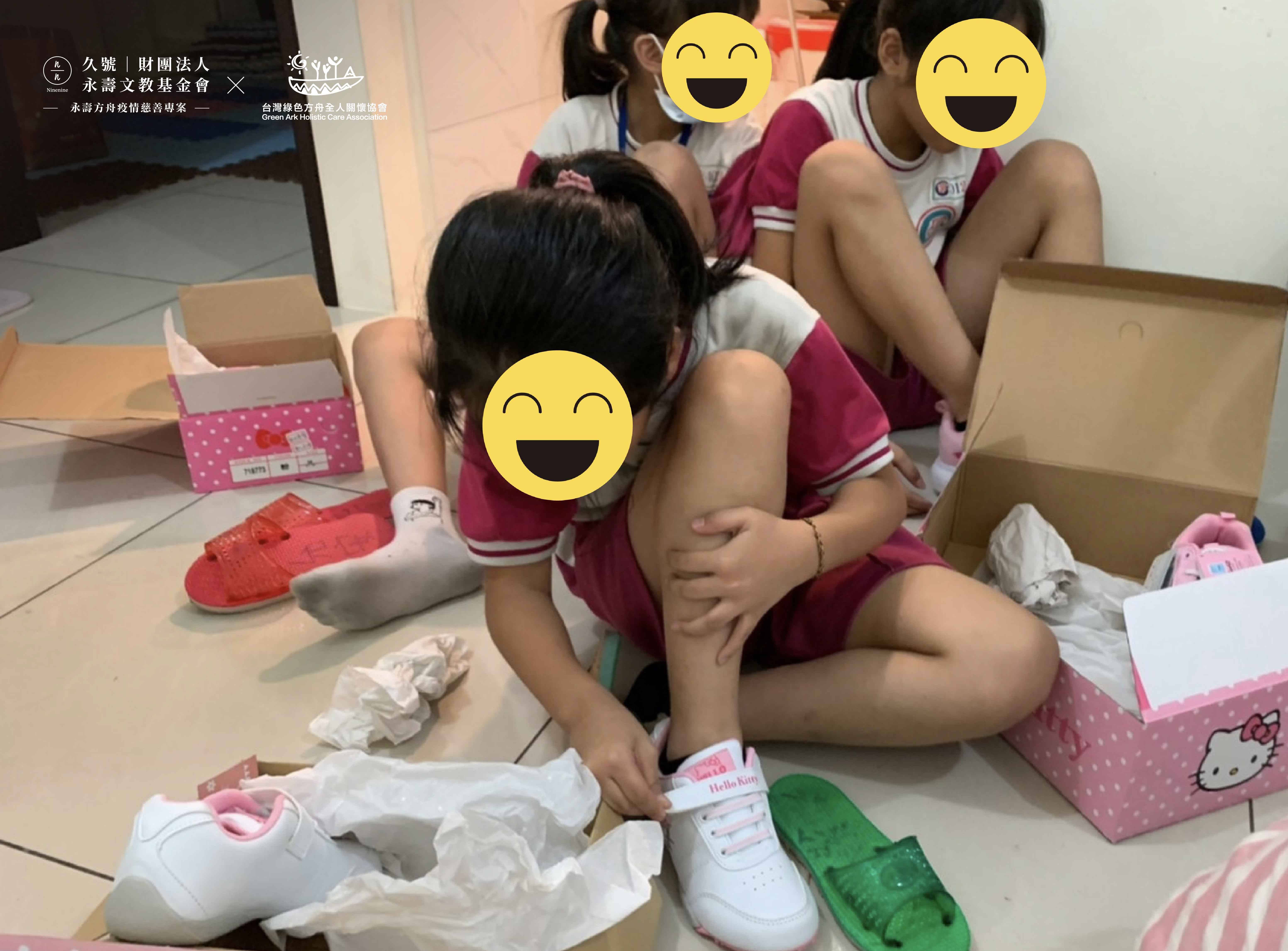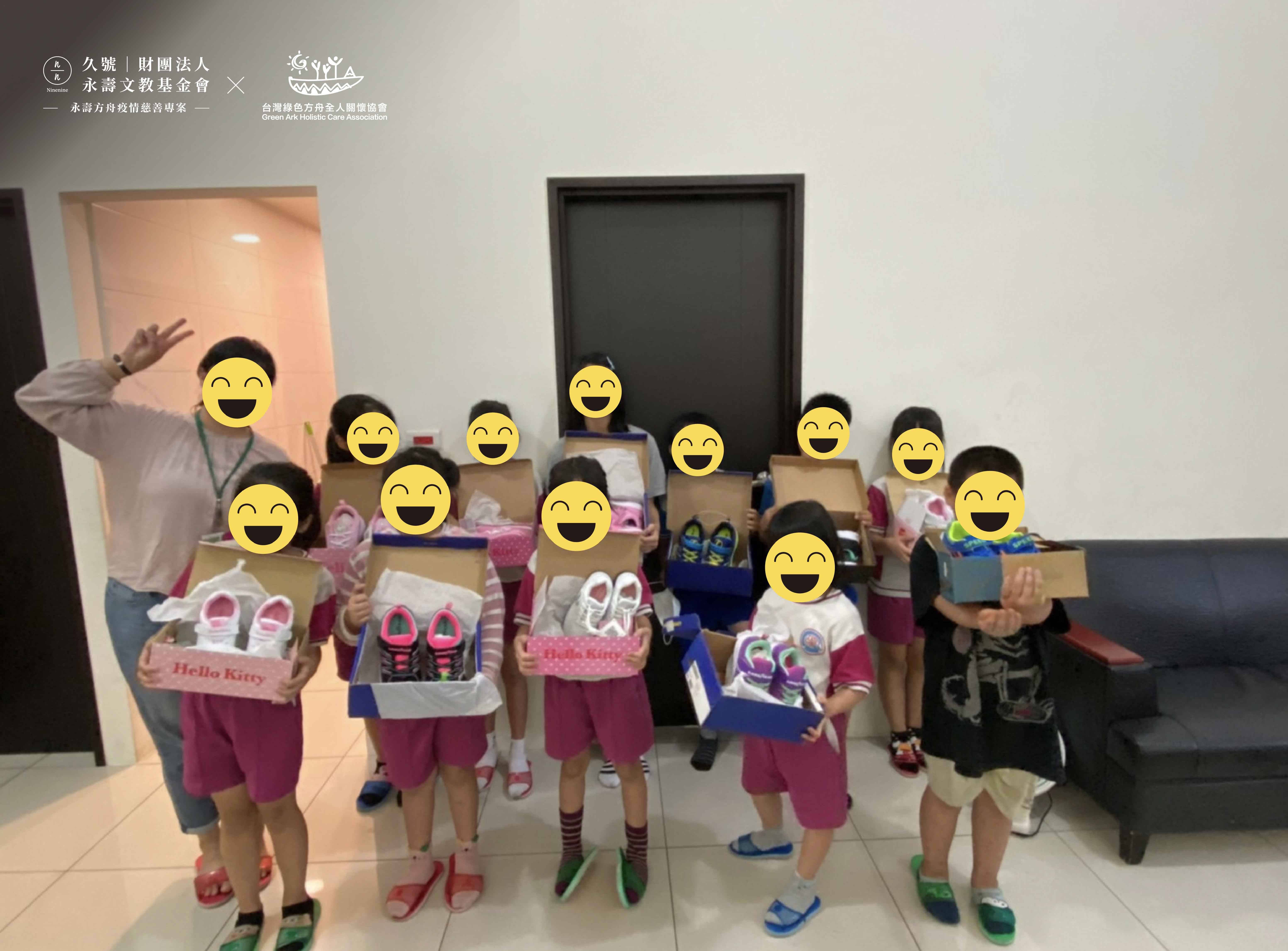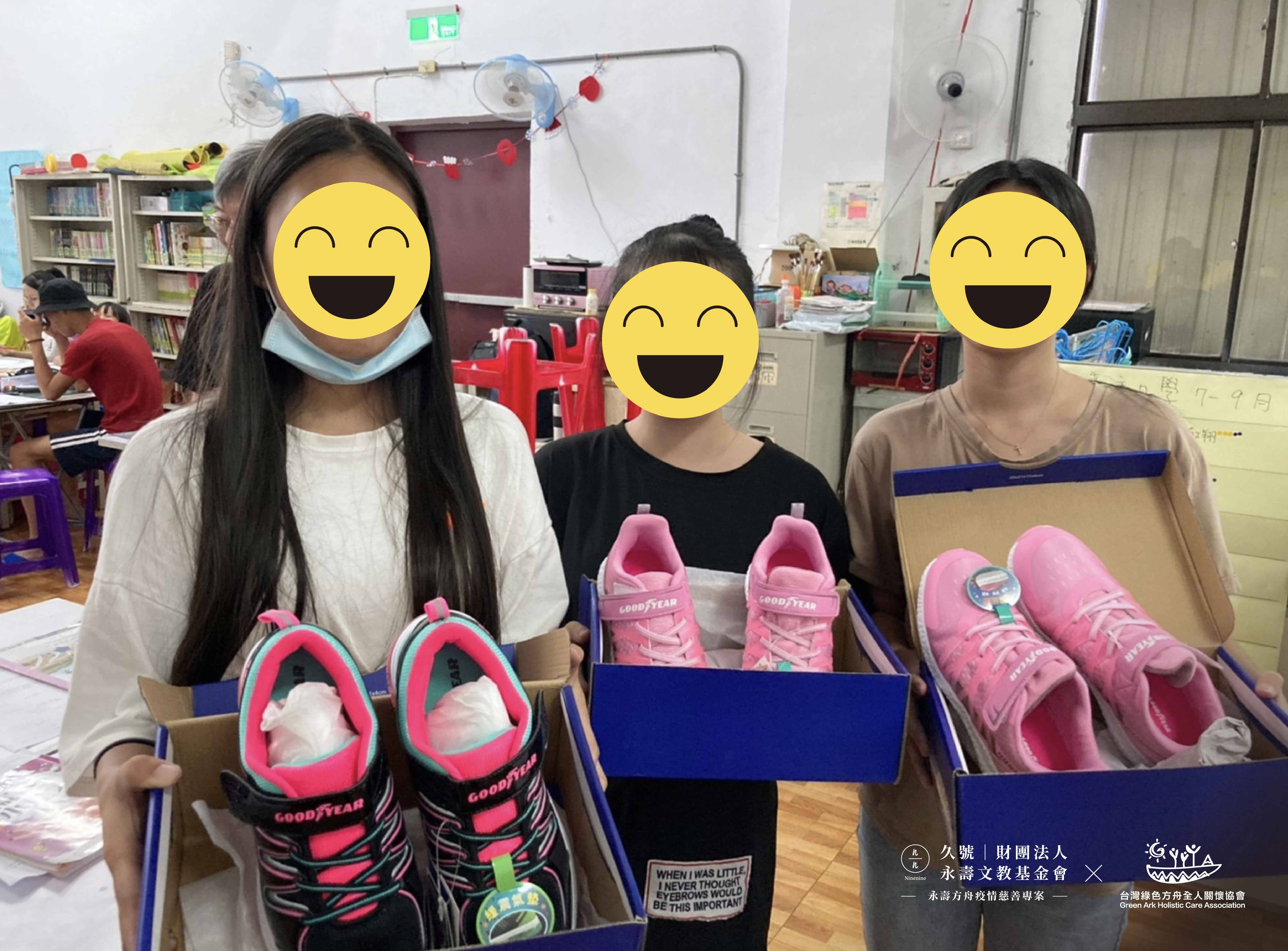 本會於2020年初主動發起並捐贈了數百雙運動鞋到偏鄉部落,讓物資缺乏的弱勢孩童能夠穿著新鞋,陪伴他們上學的路,並由合作夥伴台灣綠色方舟全人關懷協會於第一線發送到每位孩子手上,也期盼各界能踴躍捐款至本會發起之公益勸募帳戶中,一起發揮愛心,共同支持與照顧孩子們未來的每一步路。