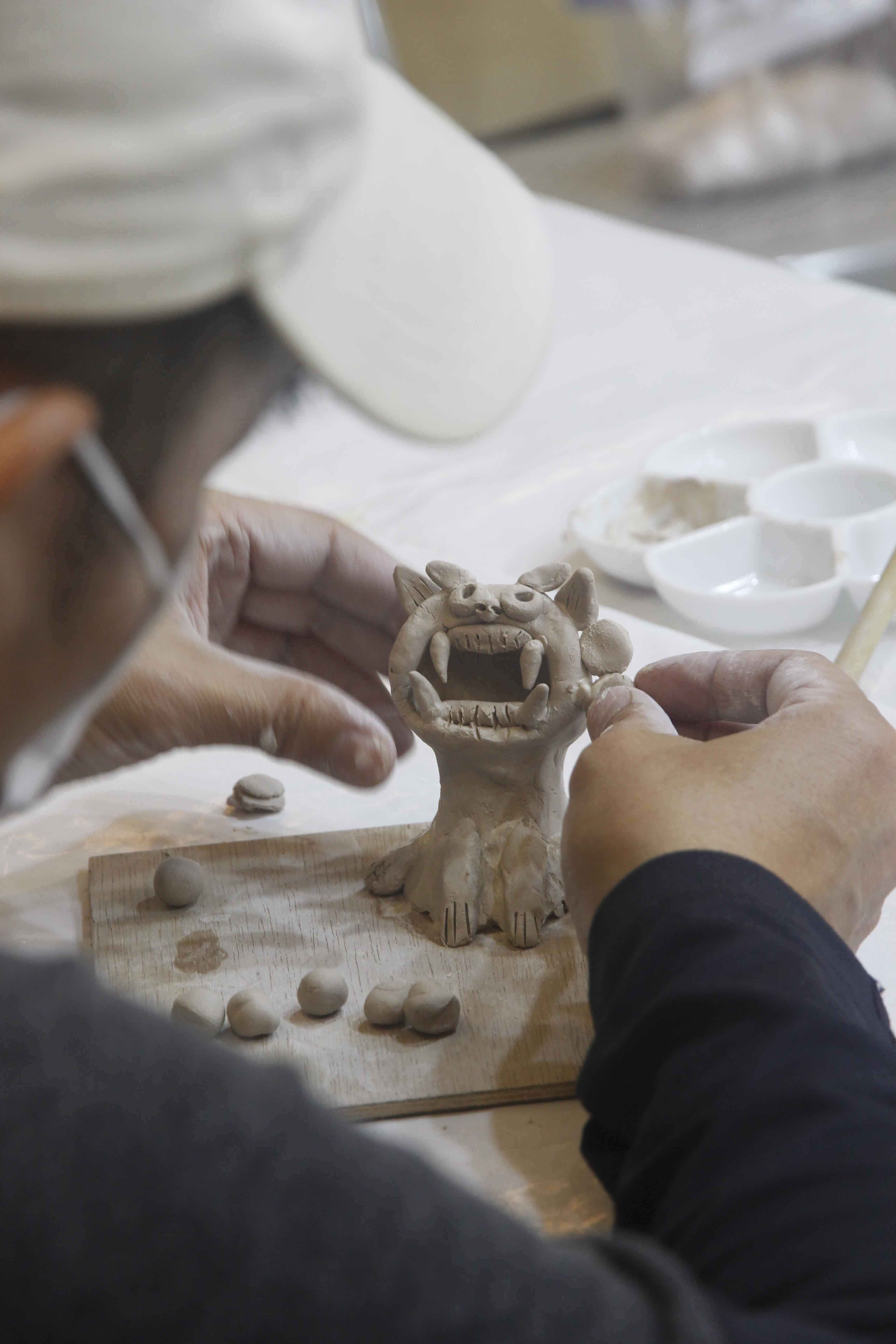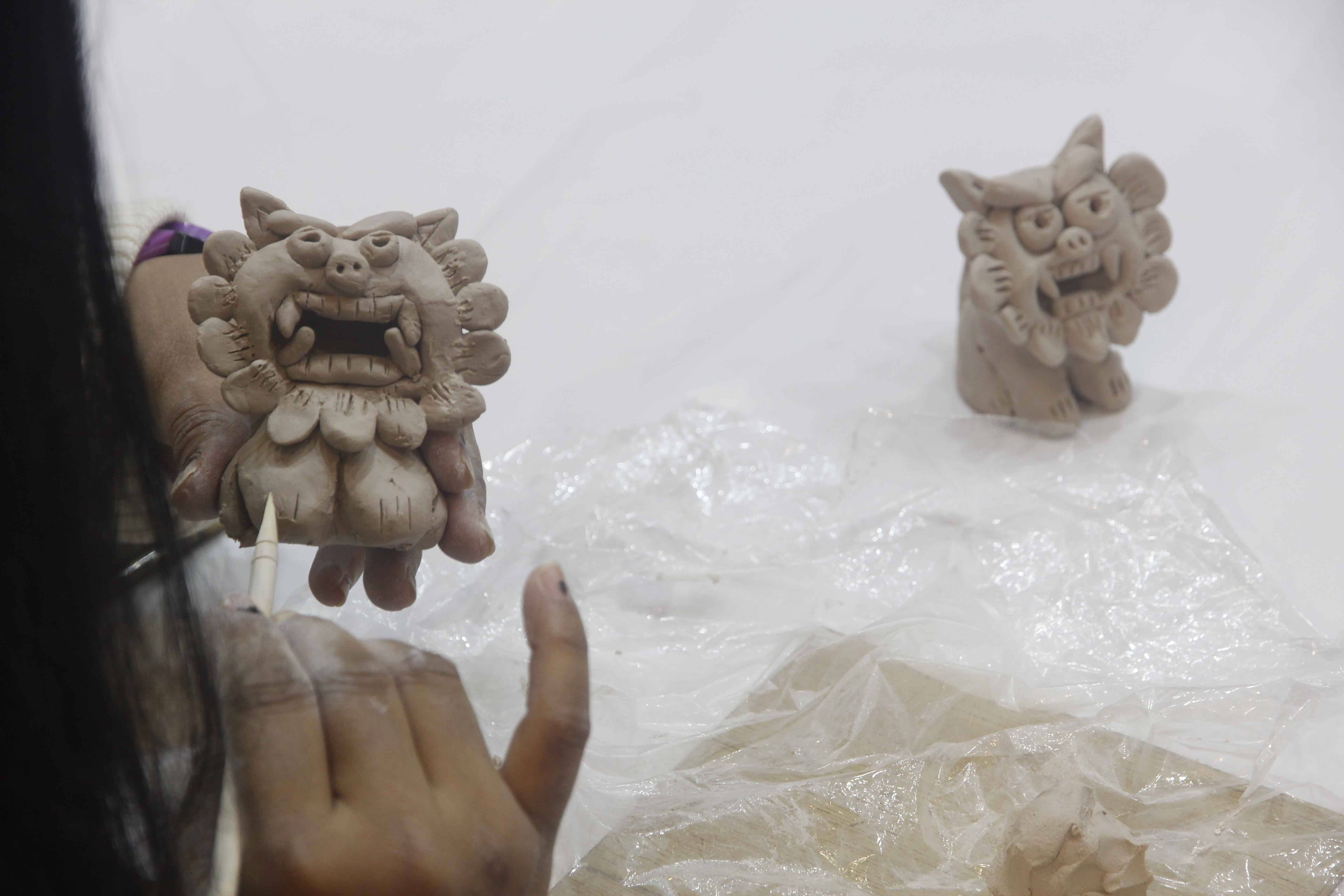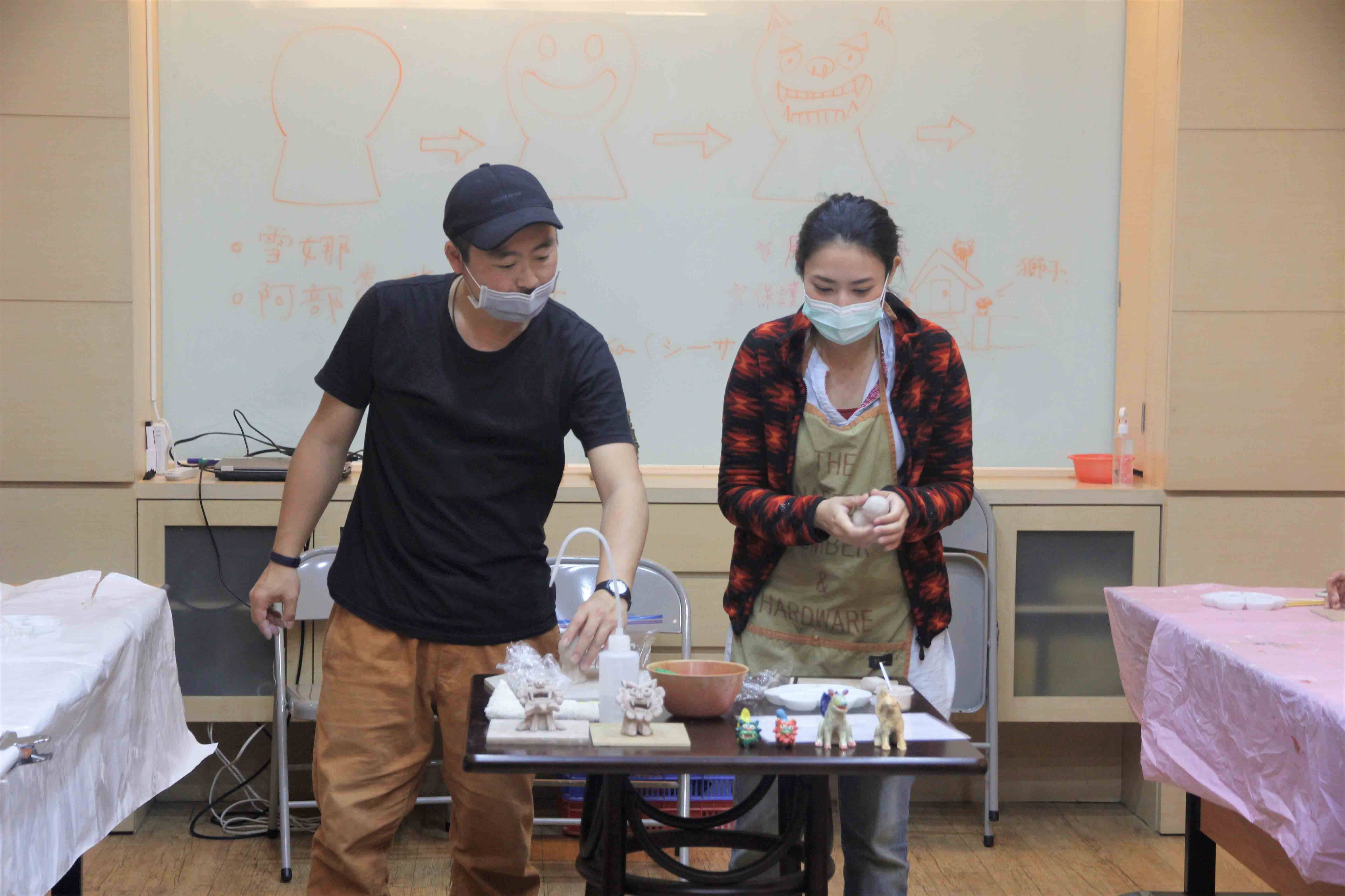 沖繩島,也是琉球群島中最大的島嶼,琉球獅子被認為是在古時從中國流入沖繩的石像。日本藝術家胡宮雪娜與阿部乳坊將透過獅像製作家鄉沖繩生活及文化分享給台灣,除了學習陶藝,讓大家體驗手作捏陶DIY樂趣外,更多在中日文化上的交流。