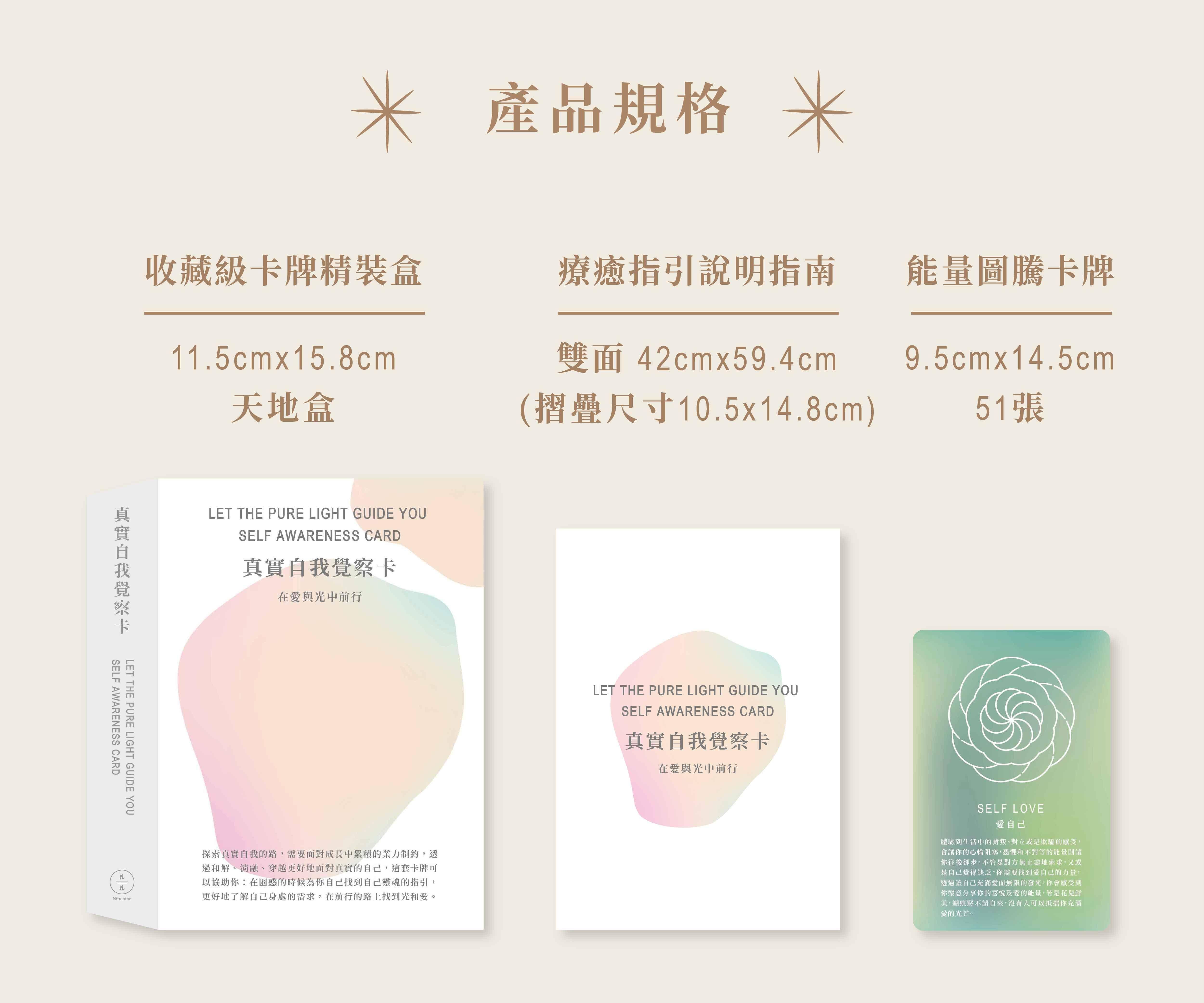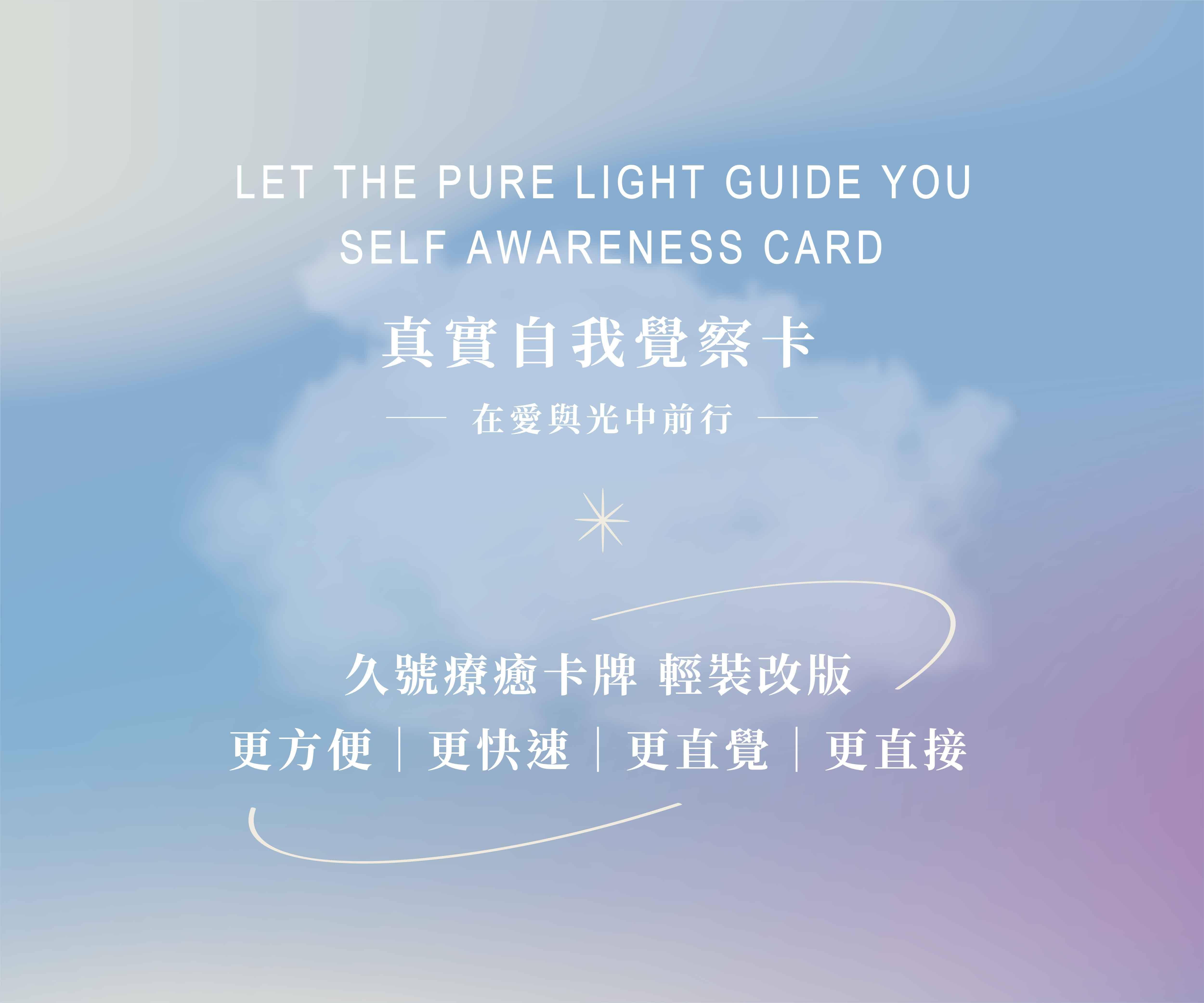 感謝大家對《癒見真實自己-全方位身心靈療癒卡牌》的支持,我們努力的誕生了《在愛與光中前行-真實自我覺察卡》,更直接、更輕便的全新呈現版本,更可以隨時覺察自己的狀態。