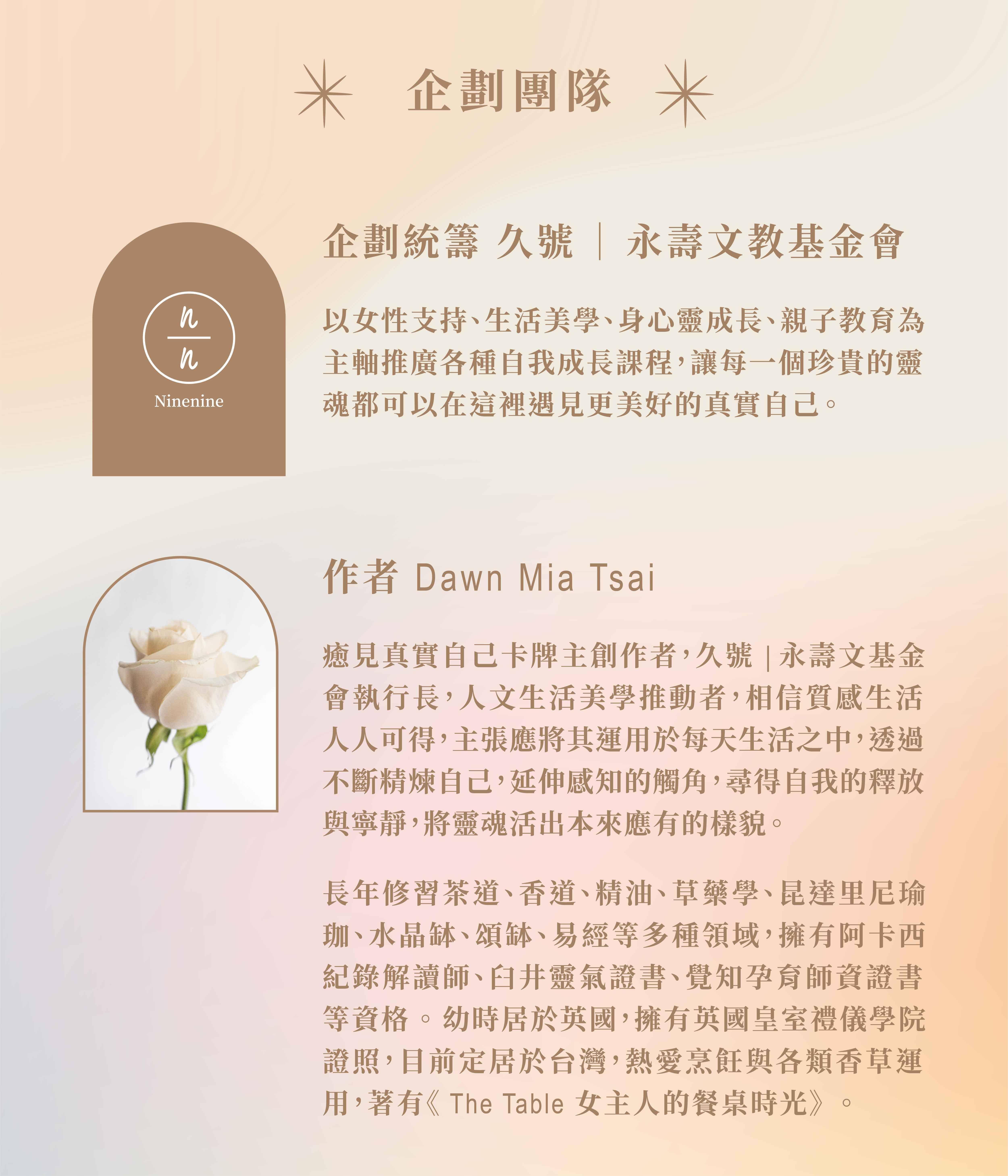 這套卡牌將協助你:在困惑的時候為你自己找到自己靈魂的指引,更好地了解自己身處的需求,在前行的路上找到光和愛。