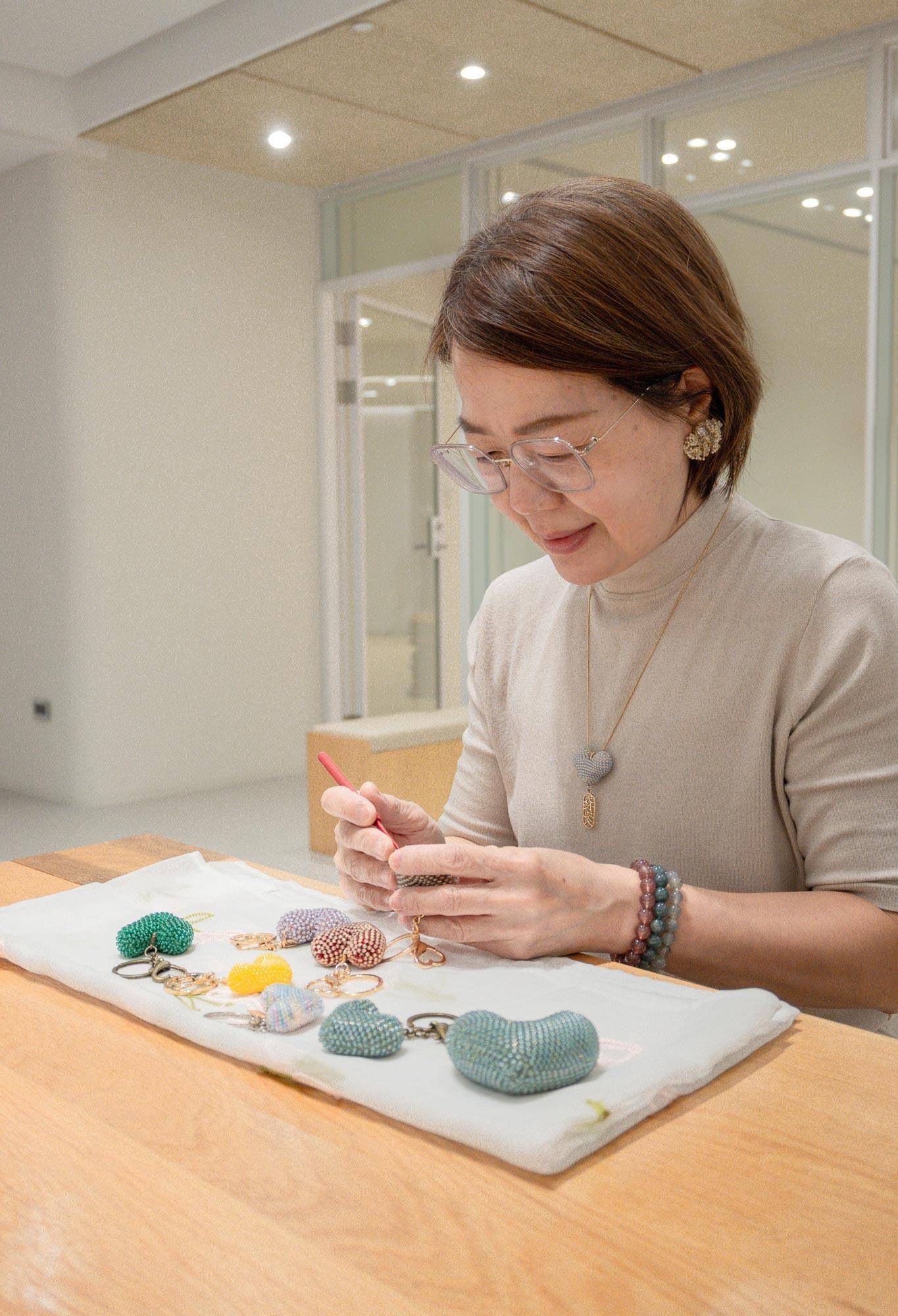 這堂「鉤織手作玻璃珠愛心吊飾」課程,以溫柔的慢鉤節奏,