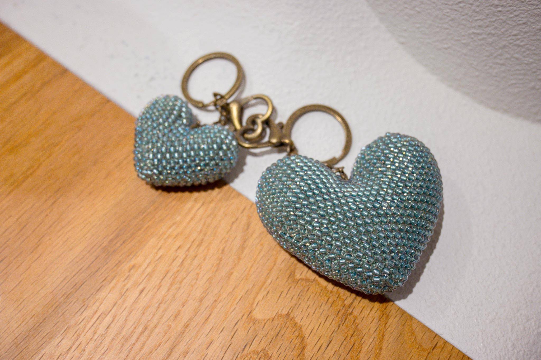 完成的愛心吊飾有大小各一,