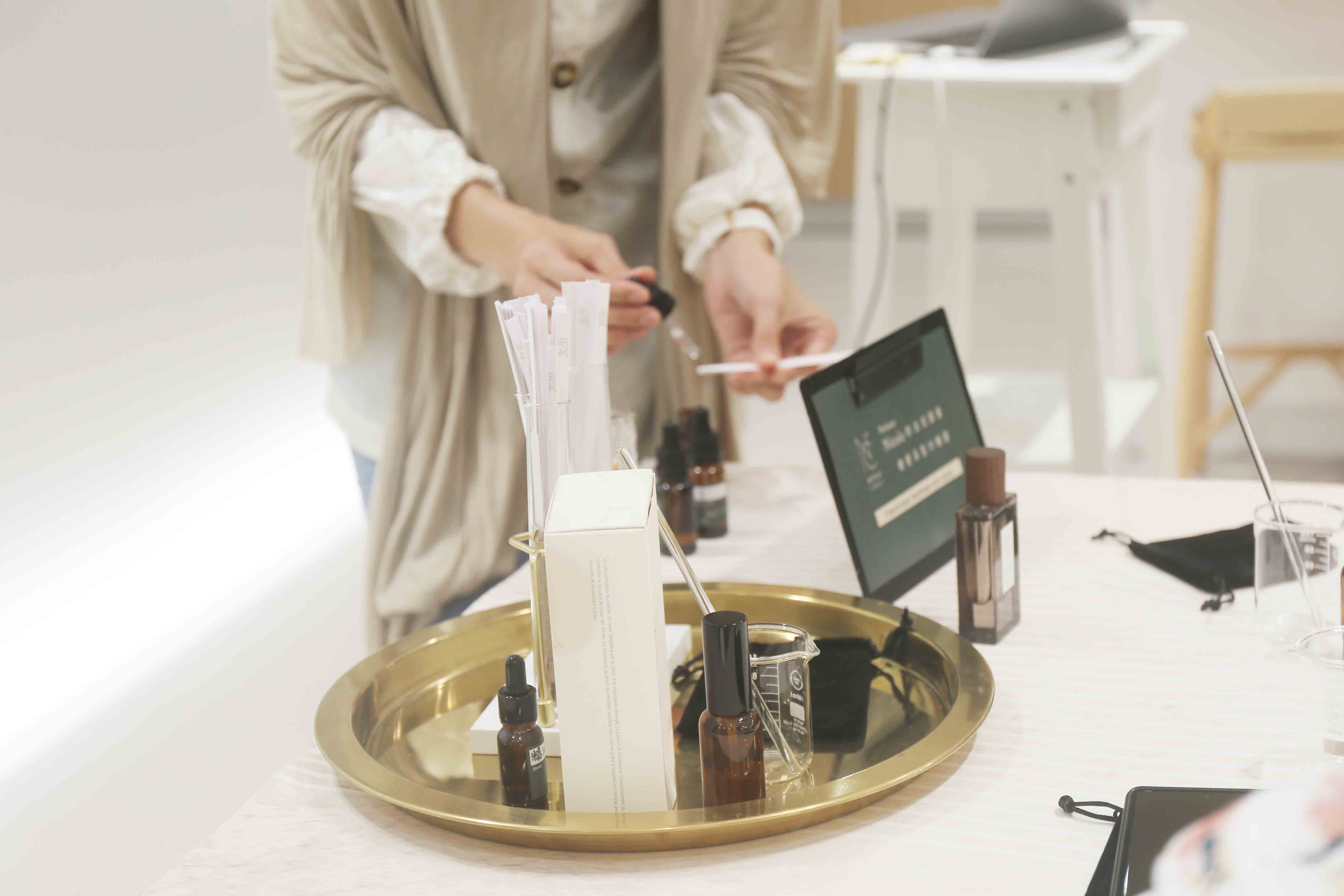透過嗅吸12種天然精油,介紹植物特性及專屬個性,引導學員們認識自己內在小孩的聲音,並運用法式調香手法,為自己調出一罐專屬氣味的室內香氛噴霧。