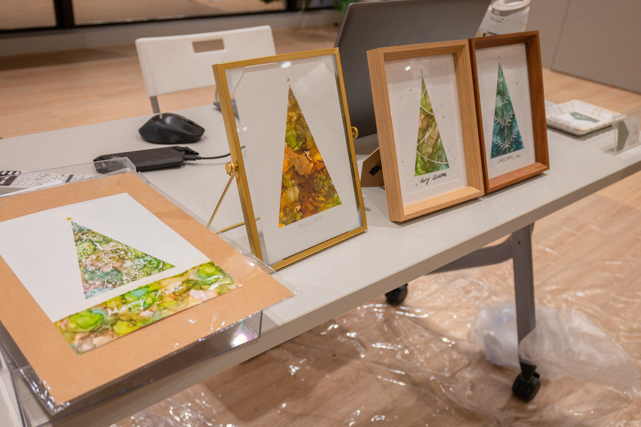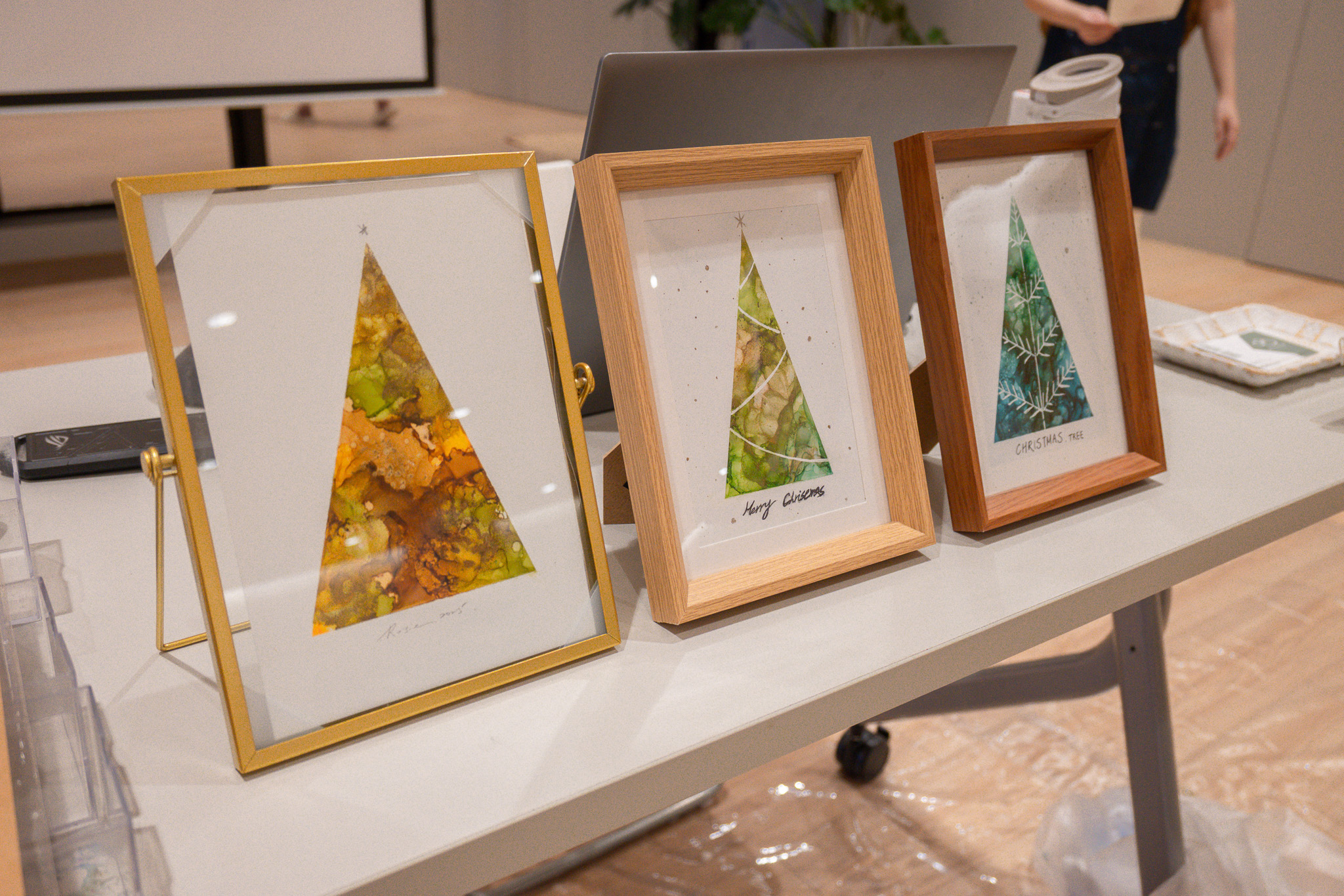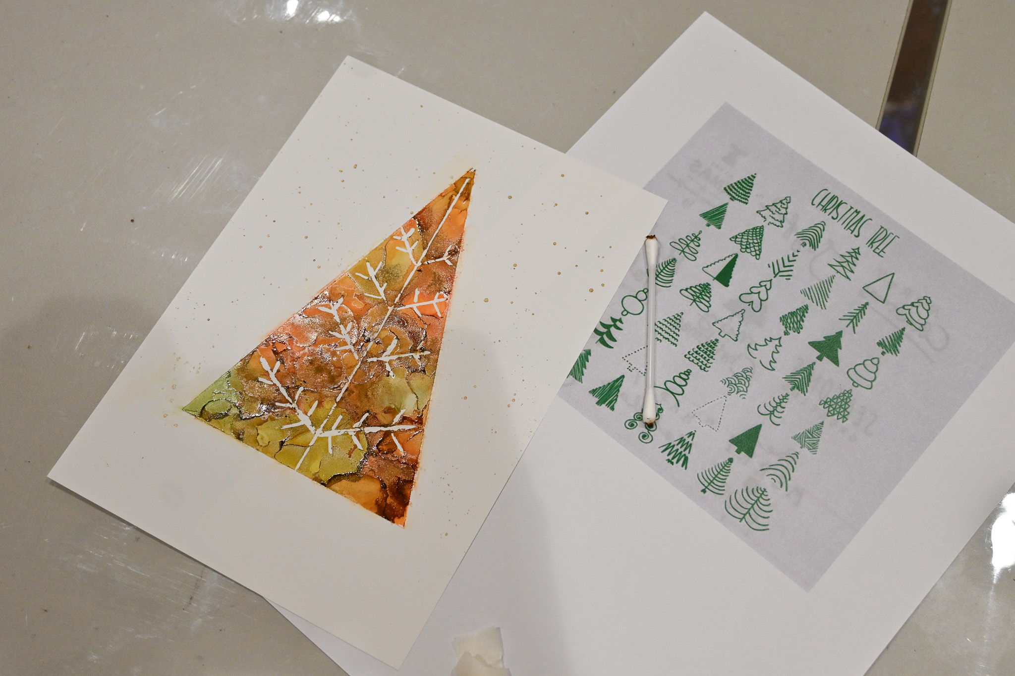 【聖誕限定】酒精墨水畫-木質調聖誕樹 Alcohol Ink Painting–Nature-Inspired Christmas Tree