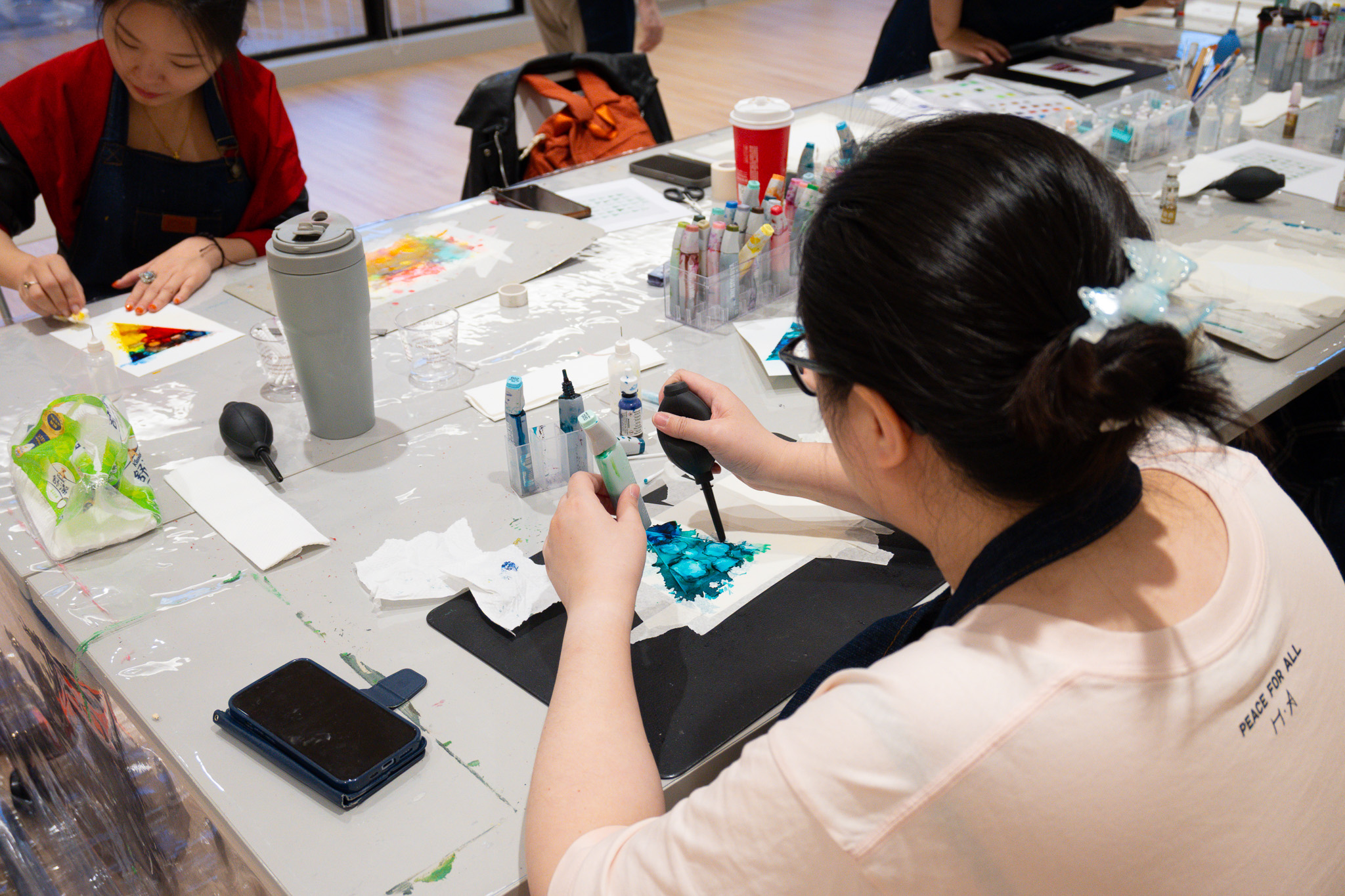 4.吹球渲染和創意留白花紋技法等,為獨家設計課程,適合大小朋友。